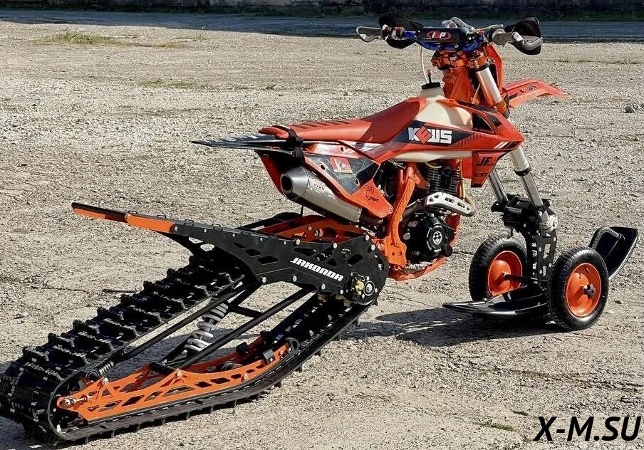 JAKONDА 123 от Snowbike — универсальный гусеничный комплект для внедорожных мотоциклов. Гусеничный мотоцикл (СНОУБАЙК) это, по сути, одноколейный снегоход. Вы получаете возможность продлить мото...
