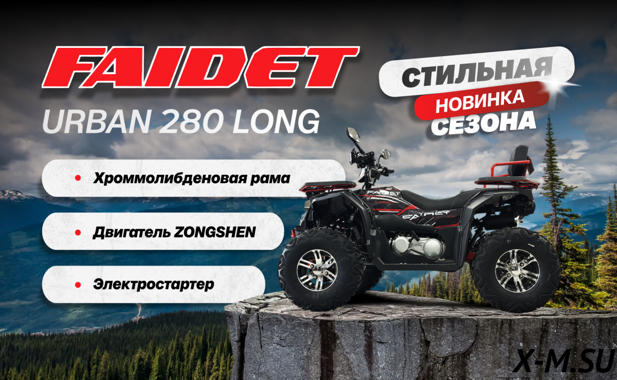 FAIDET URBAN 280 – это больше, чем просто квадроцикл. Это ваш надежный партнер и верный друг, который поможет вам открыть для себя мир приключений и возможностей. Покоряйте мир вместе с FAIDET URBAN 280!